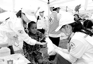 적십자의 도움을 받은 세계인